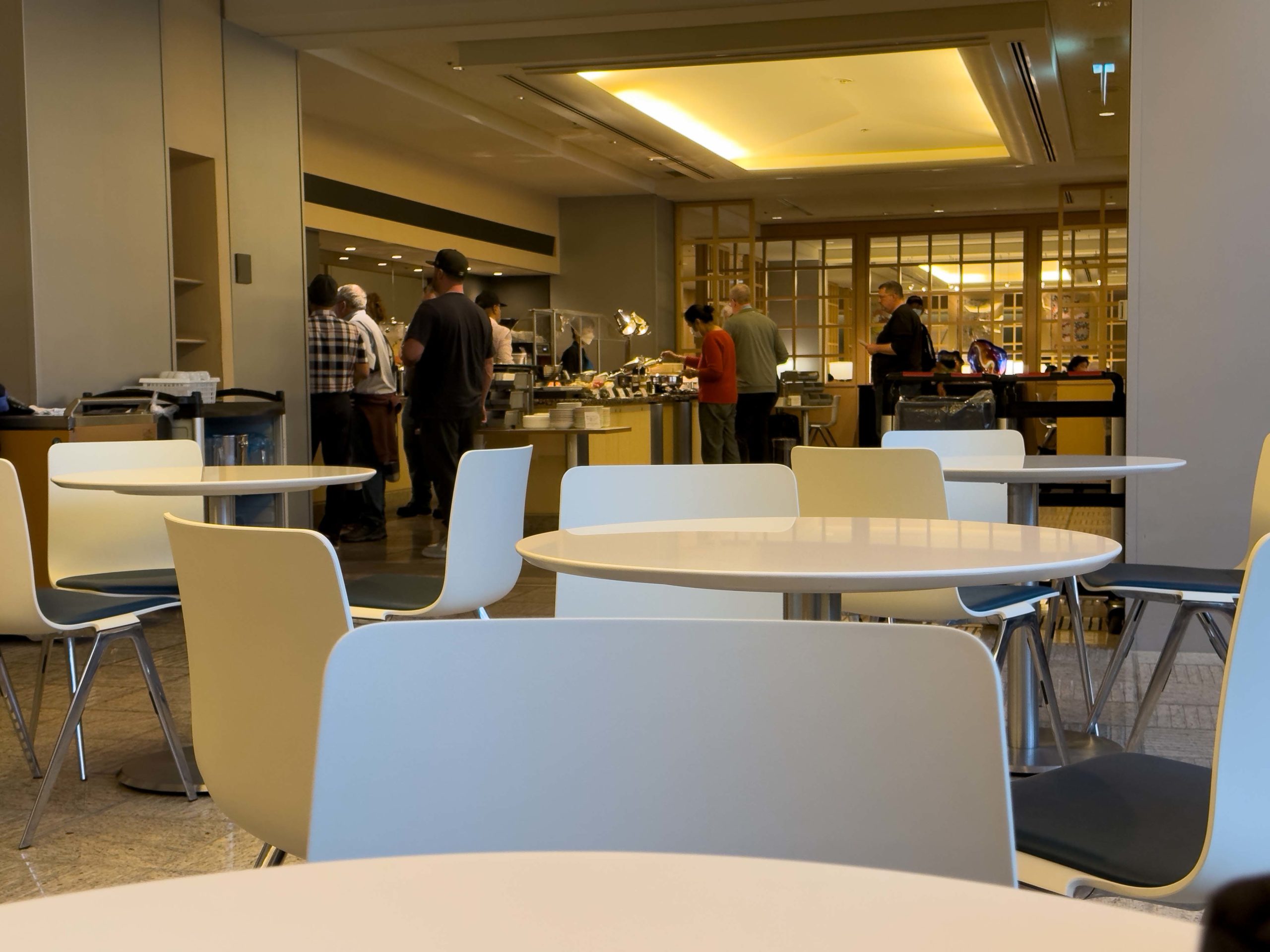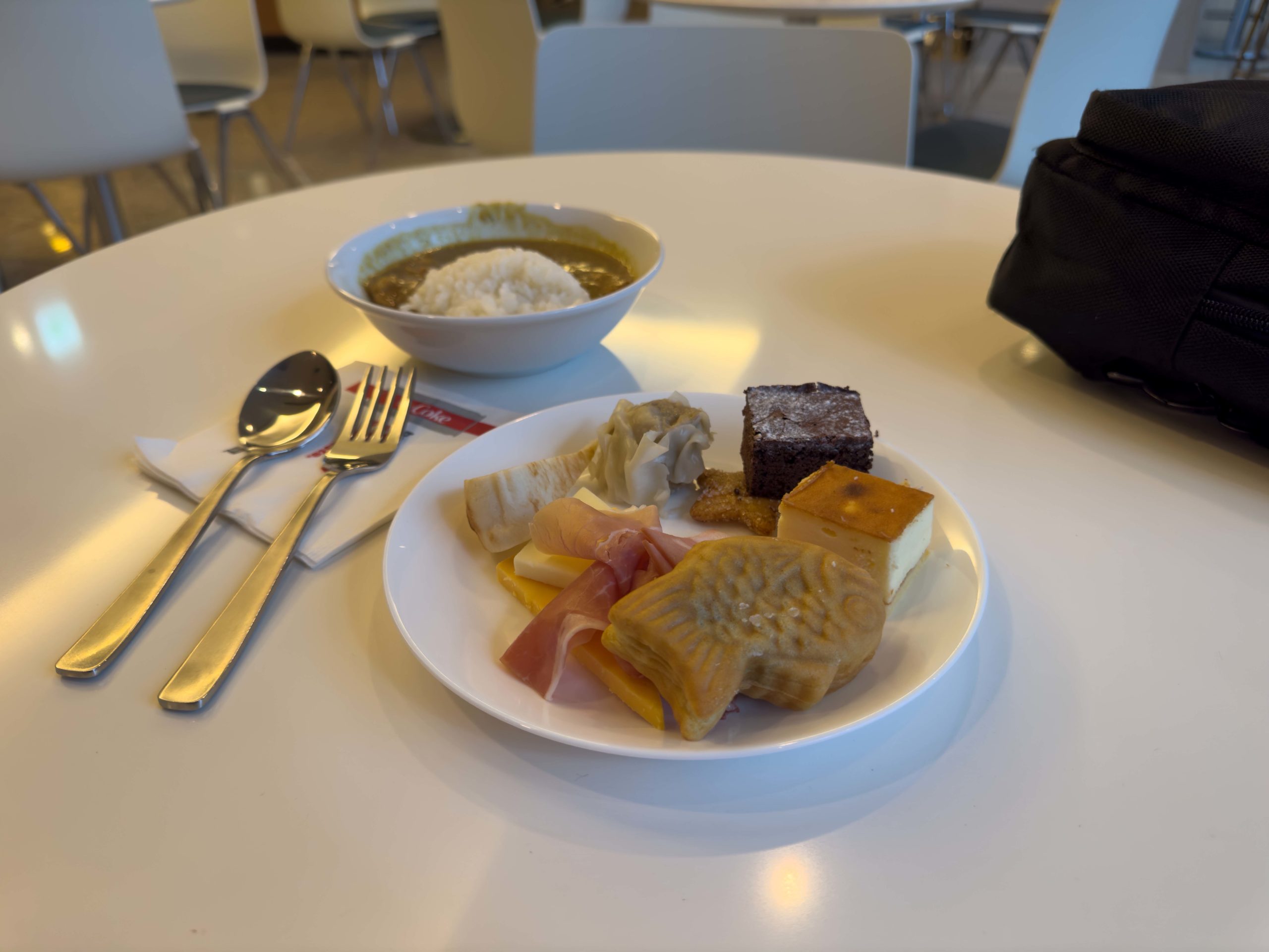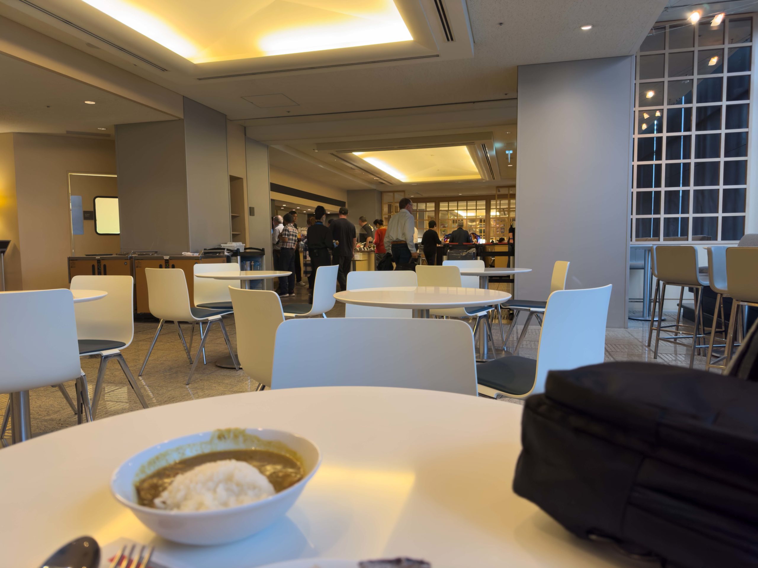 With a four-hour and 15 minute layover in Japan, we had some time to kill. Luckily, one of the jiu-jitsu club’s benefactors donated some passes so we could head into the United Club lounge to hang out during our layover. Narita’s United Club Lounge is one of the better ones we’ve been to with lots of floor space. The sprawling layout allowed the lounge to be divided into multiple dining, seating, and work spaces so we were never too close to other travelers and we enjoyed some degree of privacy and personal space.