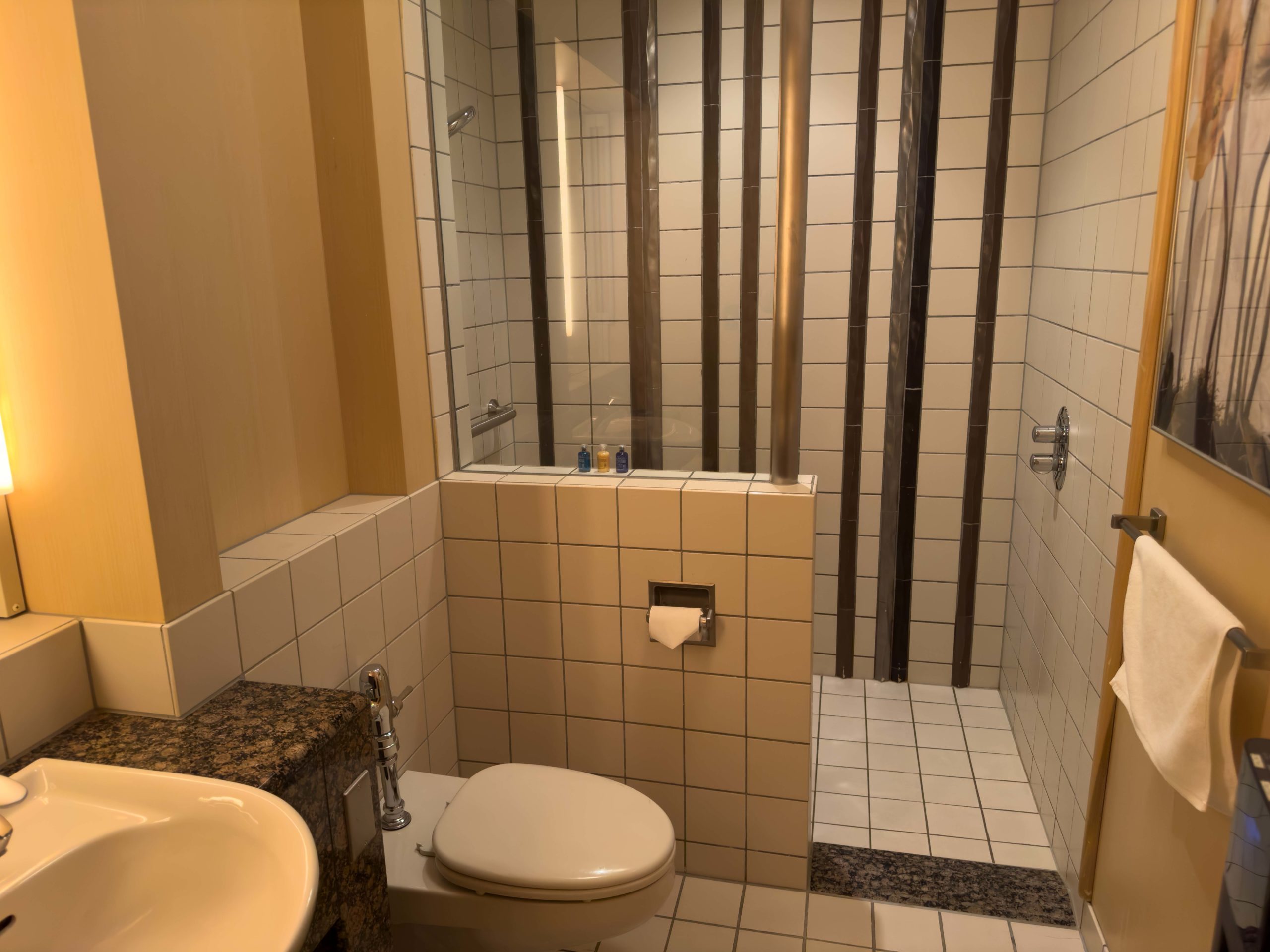 After eating, my reservation buzzer went off to notify me that a private shower room was ready. An attendant showed me to one of about a dozen private shower / bathrooms available for guests of the United Club. Each bathroom was cleaned and sanitized before allowing access and provided a shower, toilet, and sink, reminiscent of the type of bathroom you’d find in a nice hotel room. Single-serving soaps, shampoos, conditioner, and lotion were provided along with a toiletry kit of toothbrush, toothpaste, and hair comb. After 16 hours of travel, the private shower was a fantastic amenity to have access to.