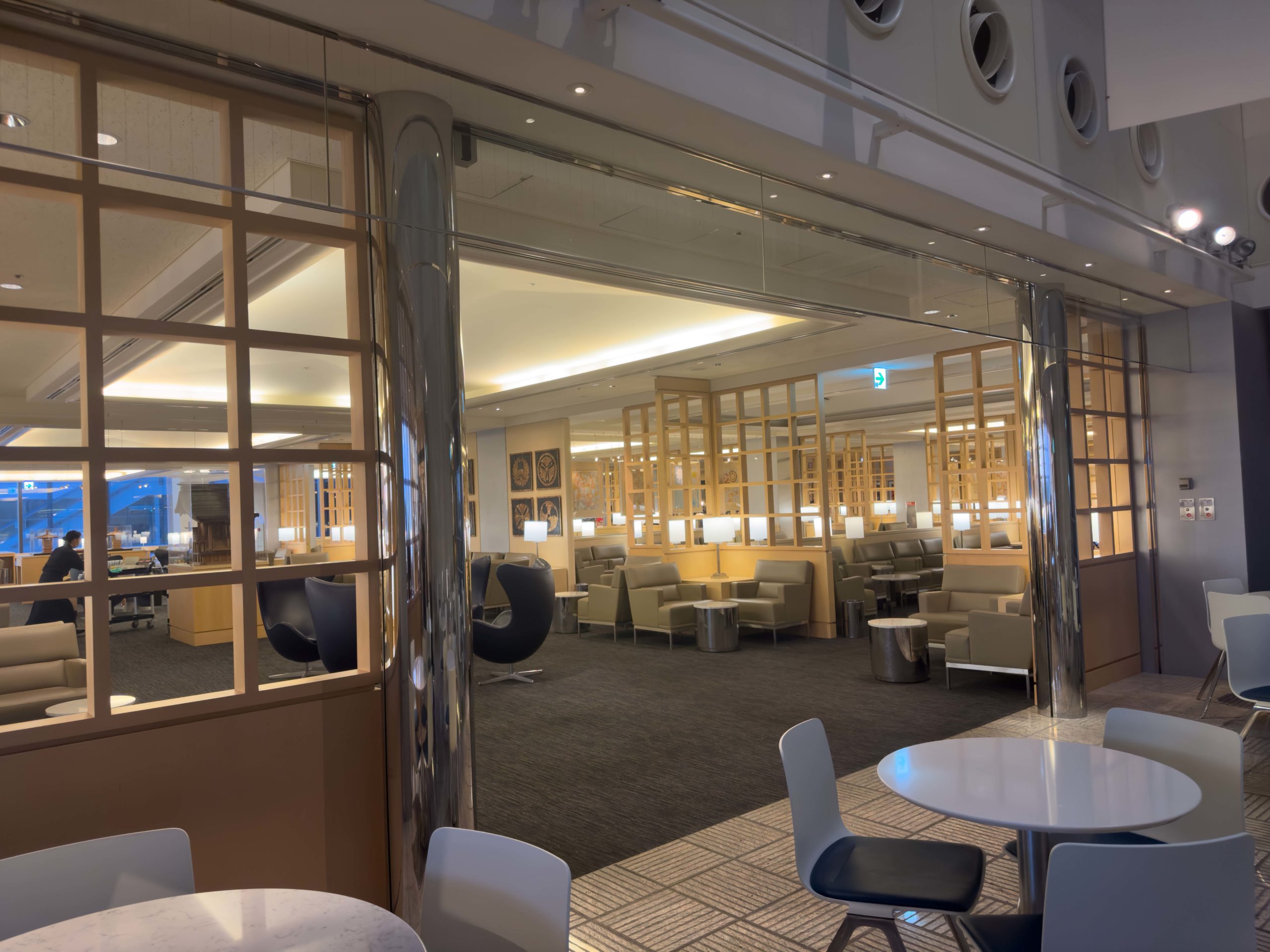 Floor to ceiling windows provided a panoramic view of the airport while the soundproofing kept the lounge relatively quiet from airport noise. After dropping off our bags in a seating area and making individual reservations for the private shower facilities, we headed to both dining areas and loaded up several plates of tasty Japanese cuisine including Japanese curry rice, sushi, noodles, dim sum, baked goods, meats, and cheeses. We also helped ourselves to the bar where there was an assortment of soft drinks, hot coffee and tea beverages, a wide range of liquor, several wines, and a handful of beer dispensing robots.