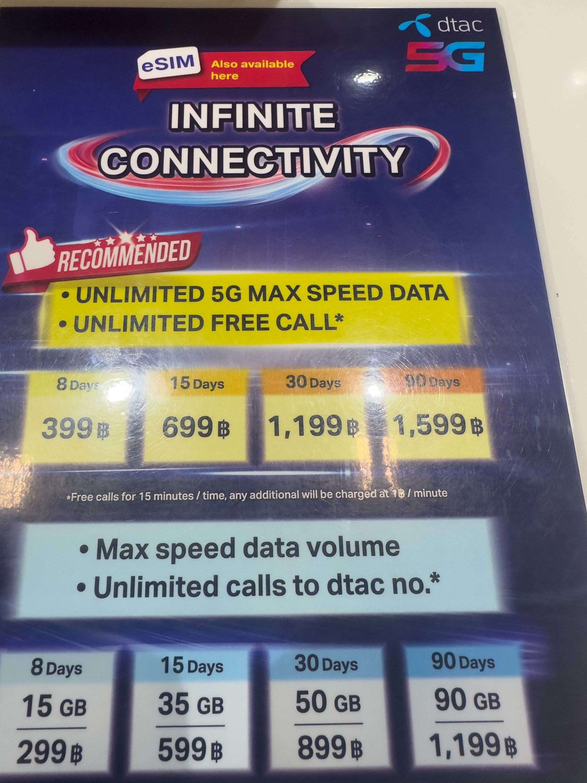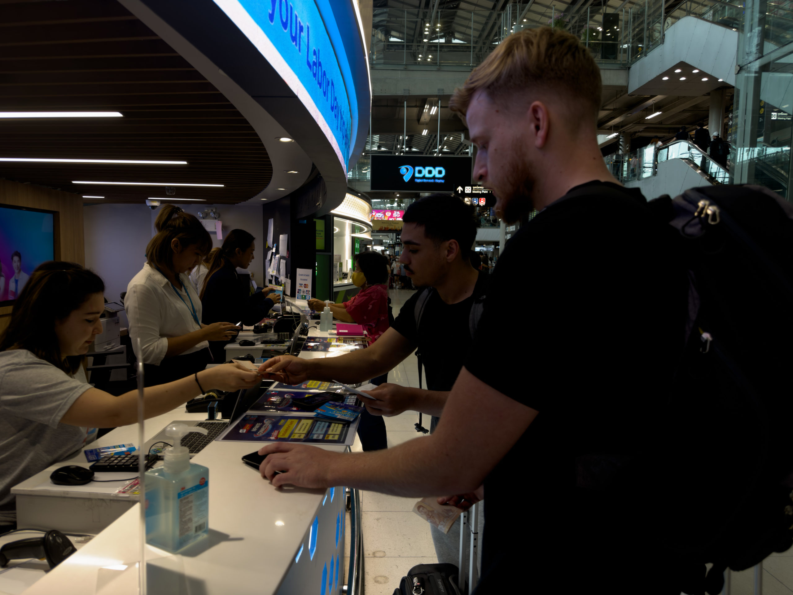 Having saved some Thai baht from my last trip, there was no need to exchange money at the airport where the exchange rates are not the greatest. We walked over to the DTAC mobile phone counter and purchased ourselves temporary sim cards to use during our time in Thailand. As long as you have an unlocked smartphone, the major mobile phone providers can install a Thai sim card for you, giving you access to voice, text, and/or data in packages of 3, 7, 15, or 30 days. Our group opted for the 15-day, 5g unlimited voice, data, text plan from DTAC which cost 699 baht per sim card (about $21 USD). The cards were installed in our phones quickly and we were on our way.