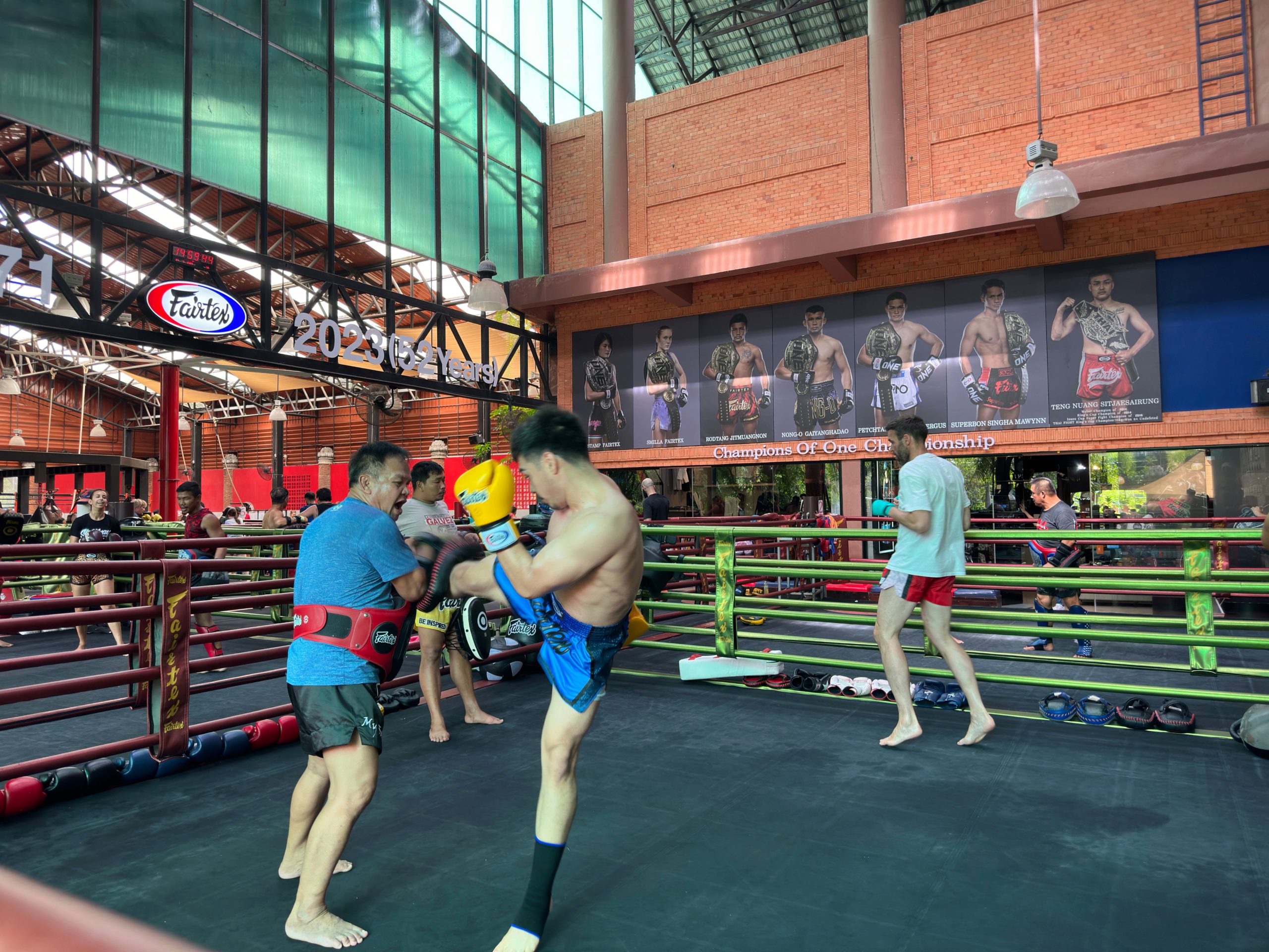 Because we had been going to Fairtex nearly every day, the gym manager told us that they were taking visitors and fighters to the One Championship fights at Lumpinee Stadium in Bangkok on a Friday night. We met up with Thai fighters and visiting fighters from around the world and jumped aboard a double-decker bus for the two-hour ride into Bangkok. Attending a One Championship fight at Lumpinee Stadium in Bangkok was an exhilarating and culturally rich experience, allowing us to watch a unique blend of traditional Thai Muay Thai, kickboxing, and mixed martial arts. Lumpinee Stadium itself is a historic venue in the world of Muay Thai and combat sports and is home to the One Championship in Thailand.