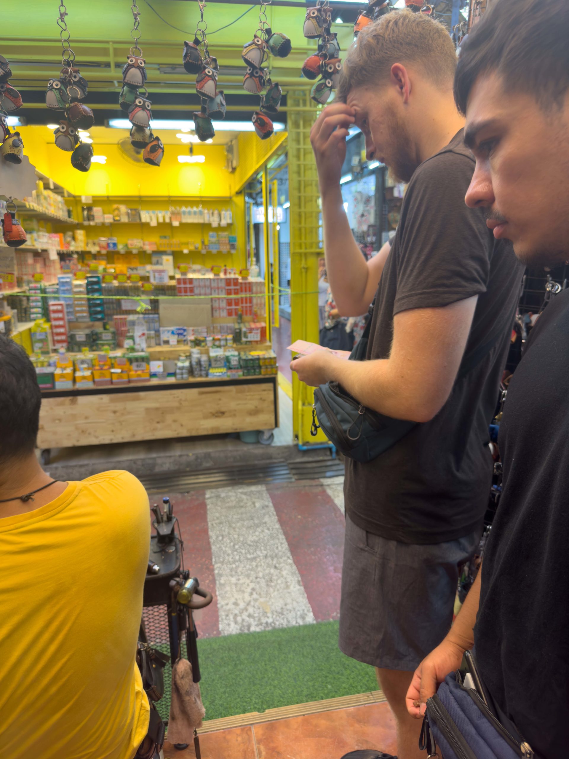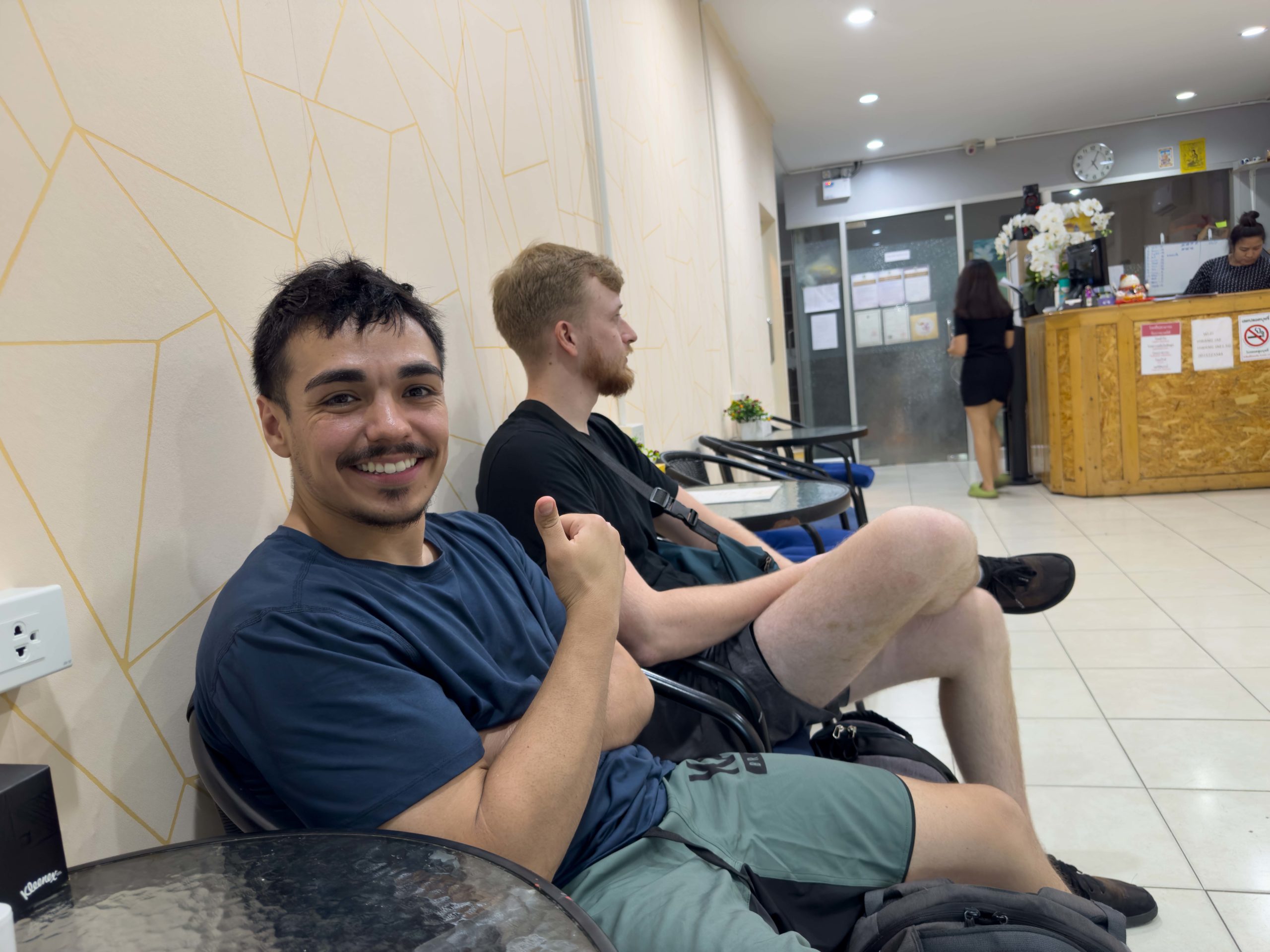 After checking in and dropping off our luggage, we decided to take a walk down the street to exchange some money. Having only a handful of Thai baht from the last trip, we needed to reload before heading out on the town. I remembered to tell everyone to only bring mint-condition, large denomination bills from back home. The larger bills get a better exchange rate and money changers won’t accept any bills that have marks, tears, or blemishes of any sort. Prior to leaving the USA, we also all opened online checking accounts with Charles Schwab so that we would be able to use Schwab’s ATM cards throughout Thailand. These cards allow you to withdraw money from any ATM in Thailand and the 220 baht (~$6.67 USD) transaction fee gets refunded to you.