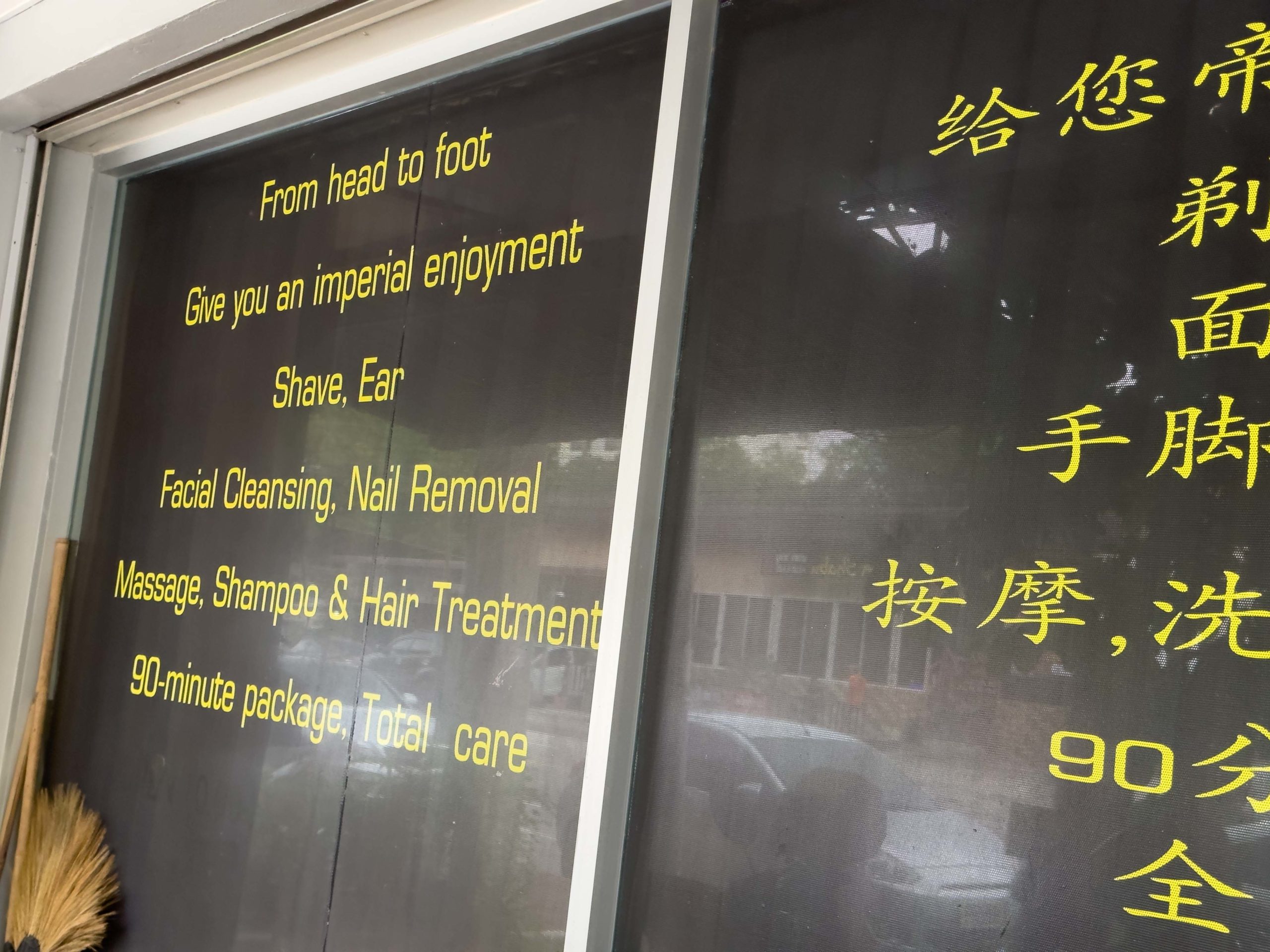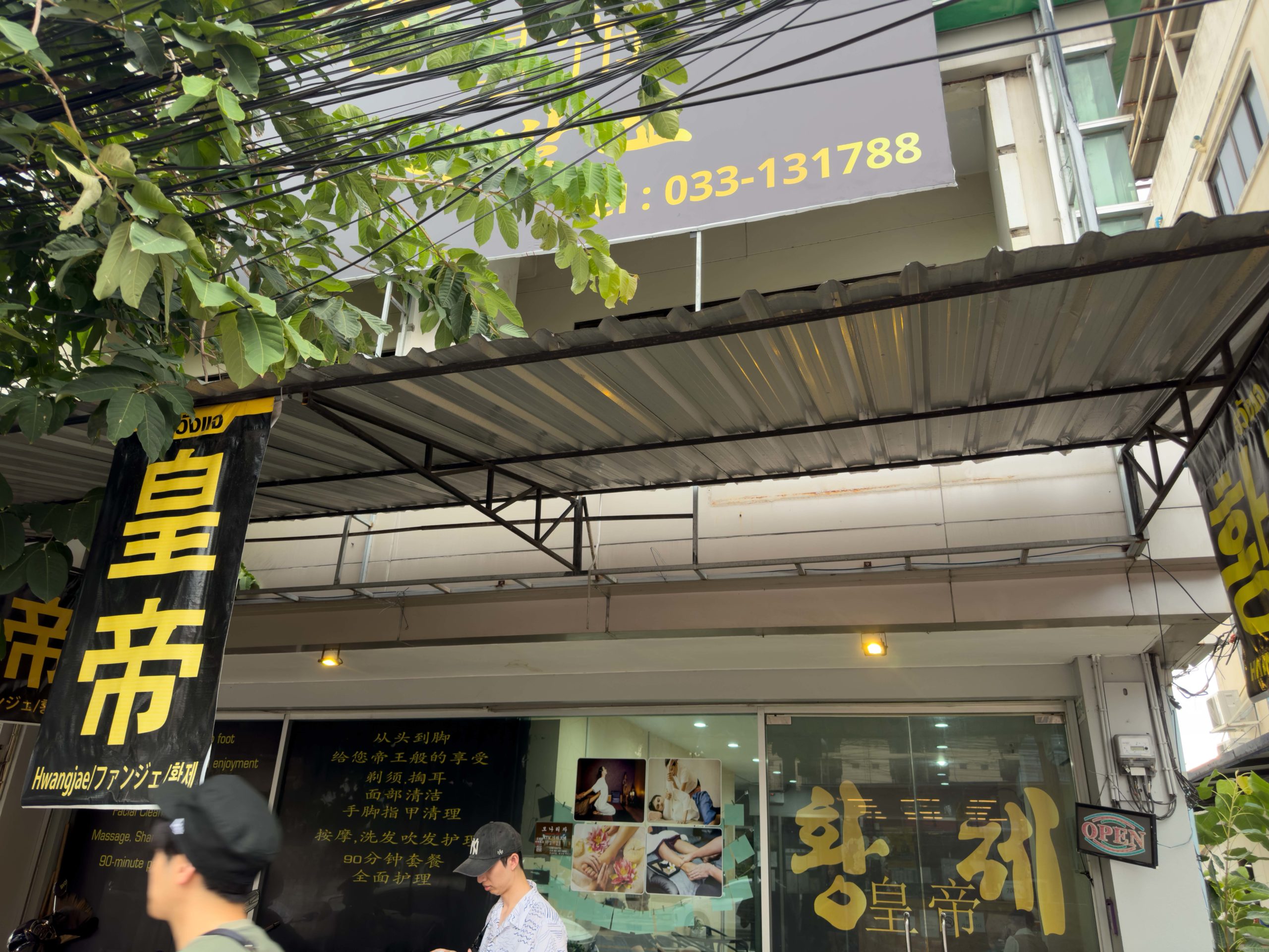 Our driver let us out at the entrance of Hwangjae Barber Shop (map), a storefront with blacked out windows covered in Korean and English writing. Hwangjae is what you can call a “Vietnamese-style” barber shop or “pampering salon” where they don’t actually cut hair.