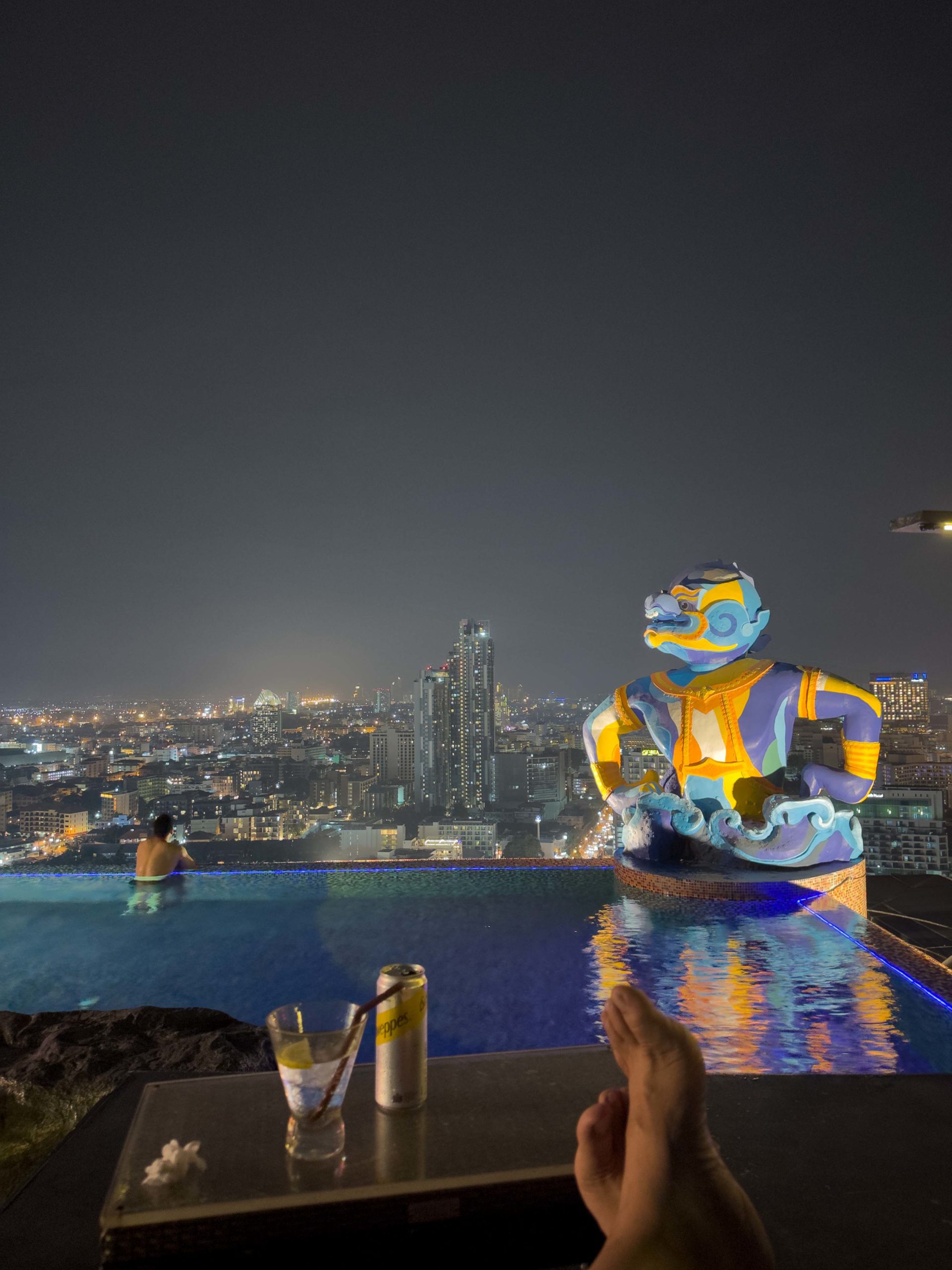 Other than going to Muay Thai and BJJ training at the Fairtex facility, we got into the weight room and wandered around town most days. We visited a bunch of the very large malls in Pattaya and got to check out many cool places to eat and drink. The Siam @ Siam Hotel below is one of the more interesting hotels in Pattaya. The top of the hotel has a two-story pool complex that is usually very busy during daylight hours, but sparsely populated at night.