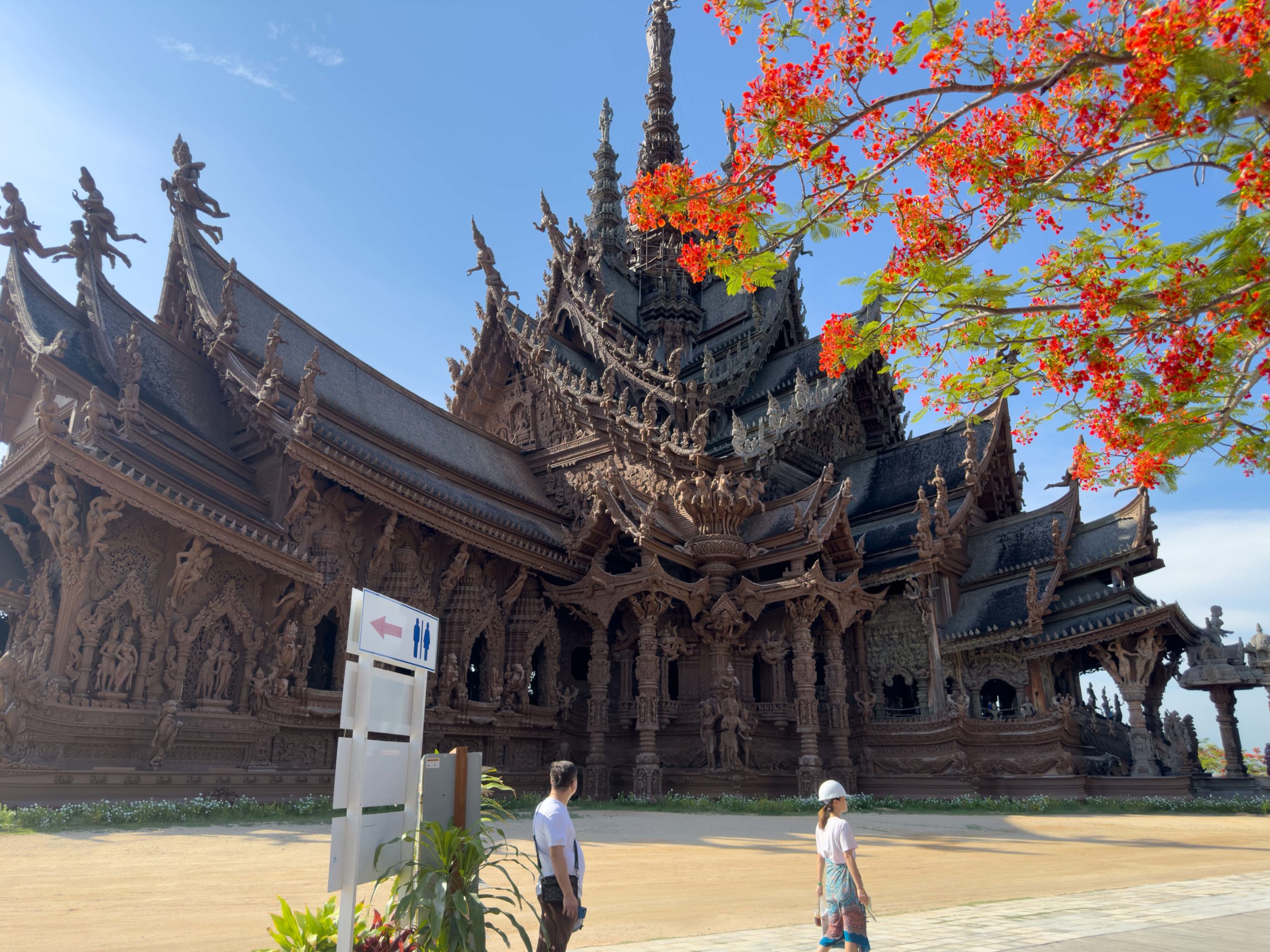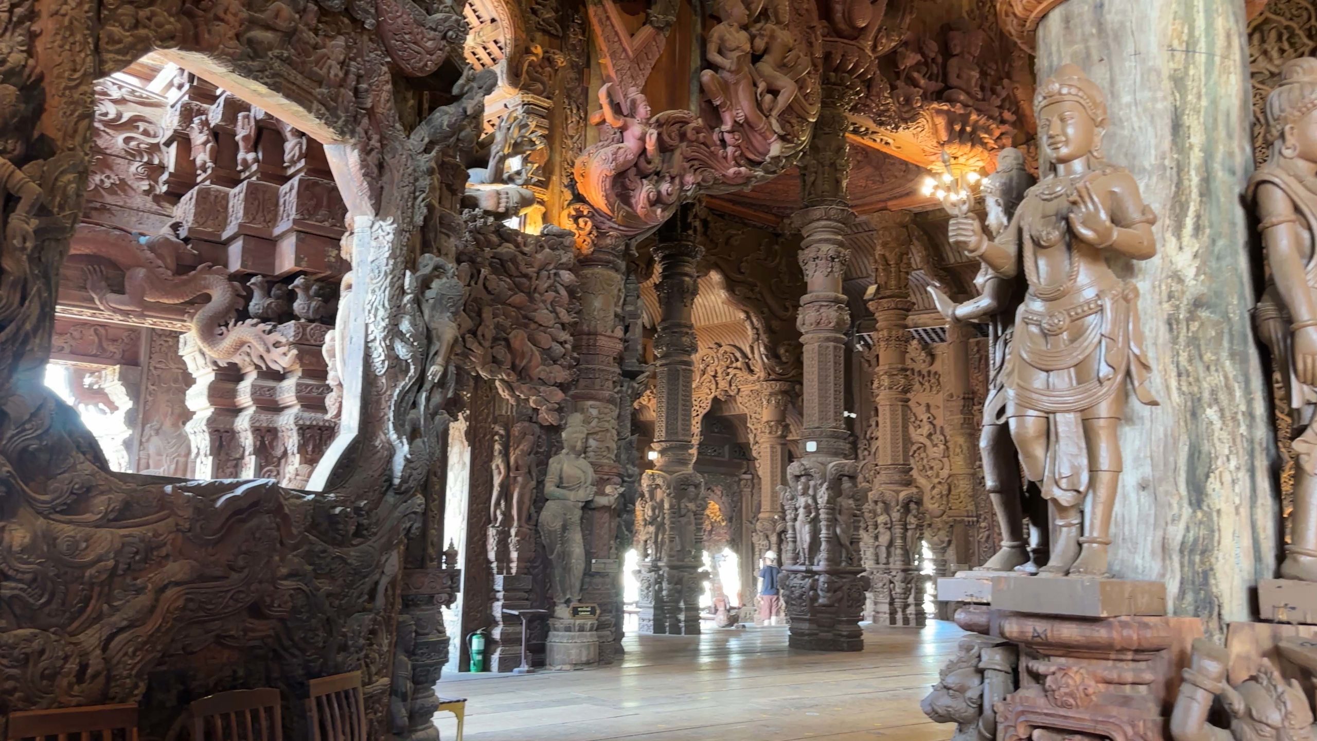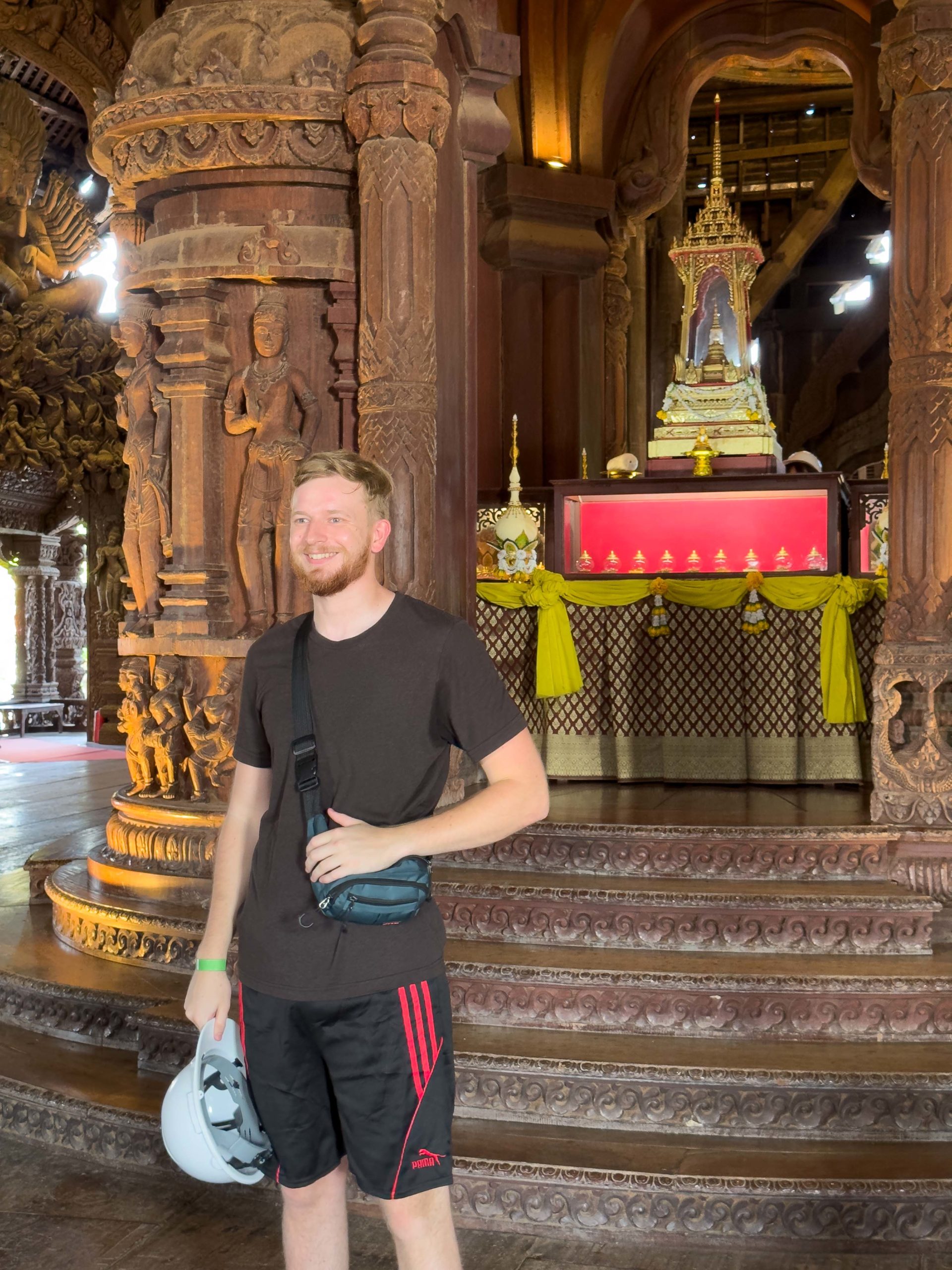 One of the main tourist attractions in Pattaya is the Sanctuary of Truth. While not an actual religious monument, the Sanctuary of Truth is a stunning architectural marvel that combines art, culture, and philosophy in a single structure. Standing at 105 meters tall, it’s entirely constructed of wood, showcasing intricate carvings that depict various religious and philosophical motifs from Hinduism, Buddhism, and other Asian beliefs. A brief tour of the structure was followed by an elephant ride, snacks, and walking around the Sanctuary grounds. A brief tranquil respite from all of the hard partying that occurs in Pattaya.