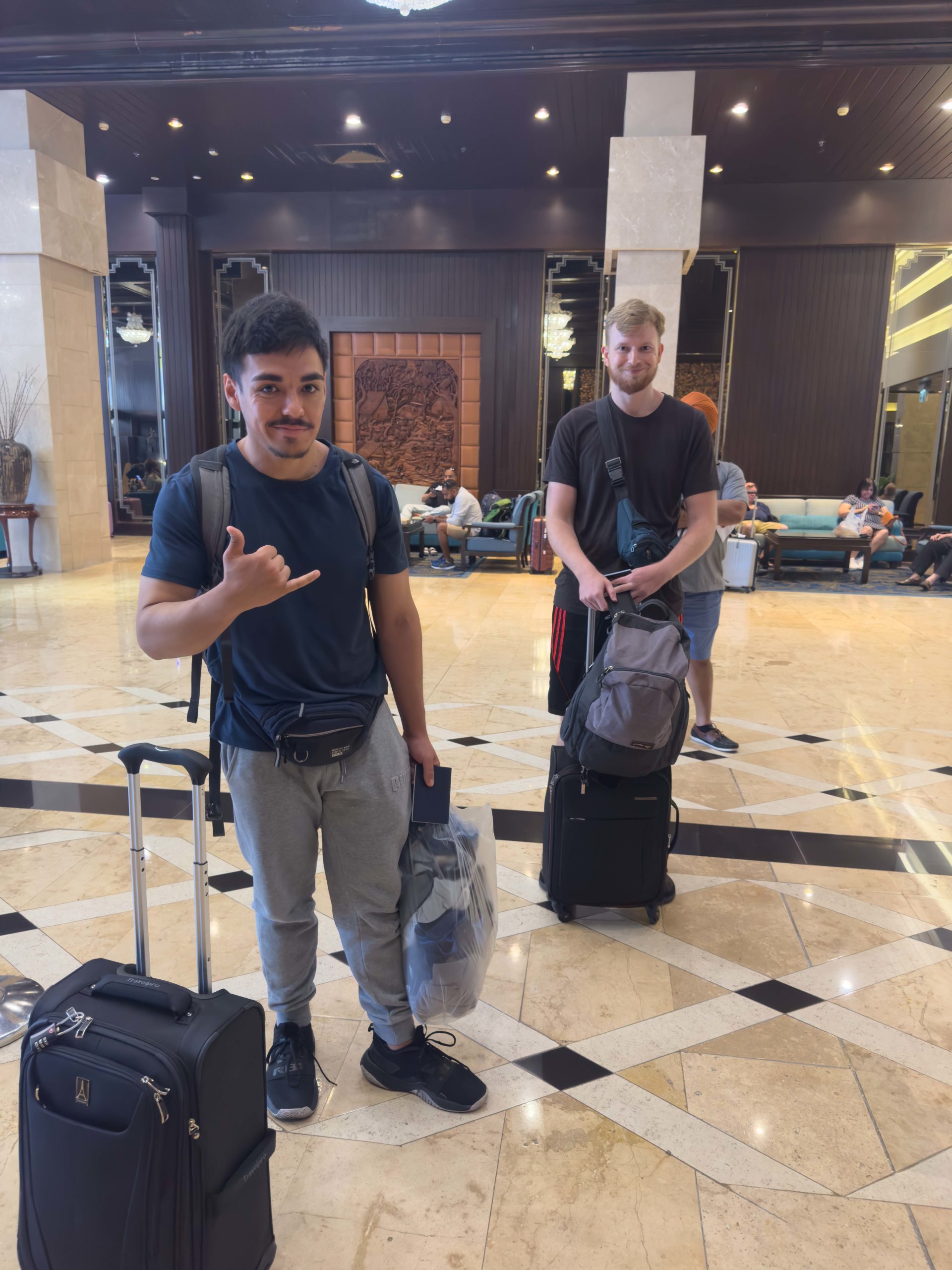 During summer 2023, several members of the University of Northern Colorado Brazilian Jiu-Jitsu club traveled to Thailand for a few weeks of Muay Thai and Brazilian Jiu-Jitsu training along with seeing the sights, meeting various martial artists, and and immersing themselves in the culture. The trip had been planned for months, and everyone was excited to finally embark on this adventure. Thailand is 13 hours ahead of Denver, and when combined with 27 total hours of travel time, the journey from Colorado to Thailand takes nearly two full days. Departing Denver at 8:00 a.m. put us in Bangkok just before midnight the following calendar day (40 hours later, accounting for the time change). The first leg of our trip took us from Denver, Colorado (DIA) to San Francisco, California (SFO) via United Airlines. At two hours and 45 minutes long, the flight to San Francisco was brief and pleasant. The SFO airport is bustling in the morning and we passed by numerous shops and restaurants on our walk across the airport to our next departure gate. The wait at SFO was two hours long, but boarding began an hour before takeoff anyway, so more like a one hour layover. It gave us enough time to fill our water bottles at one of many bottle filling stations, grab some snacks, and stretch our legs. The next flight was the longest of the journey: 11 hours and 10 minutes from SFO to Narita International Airport in Tokyo, Japan (NRT).