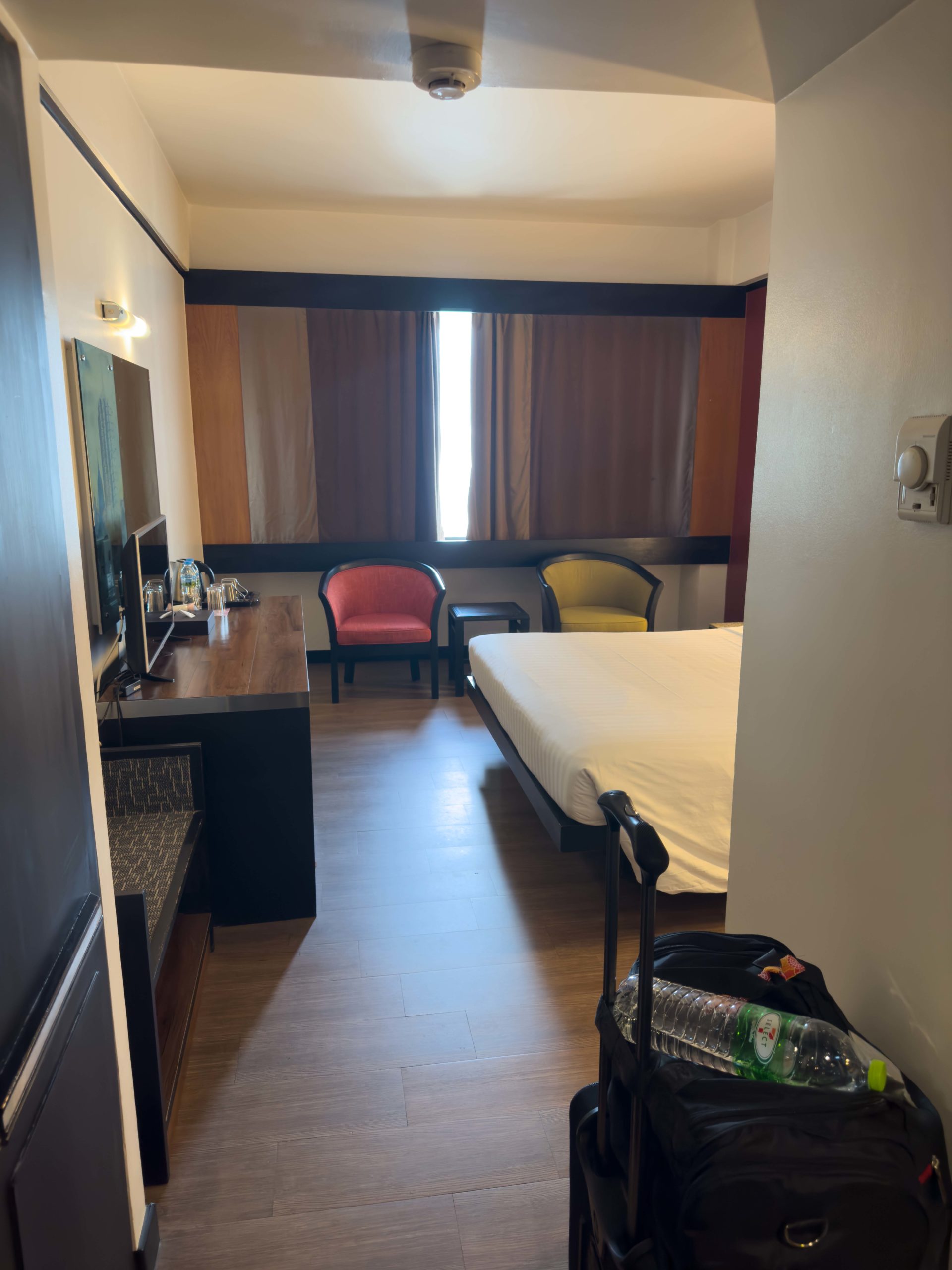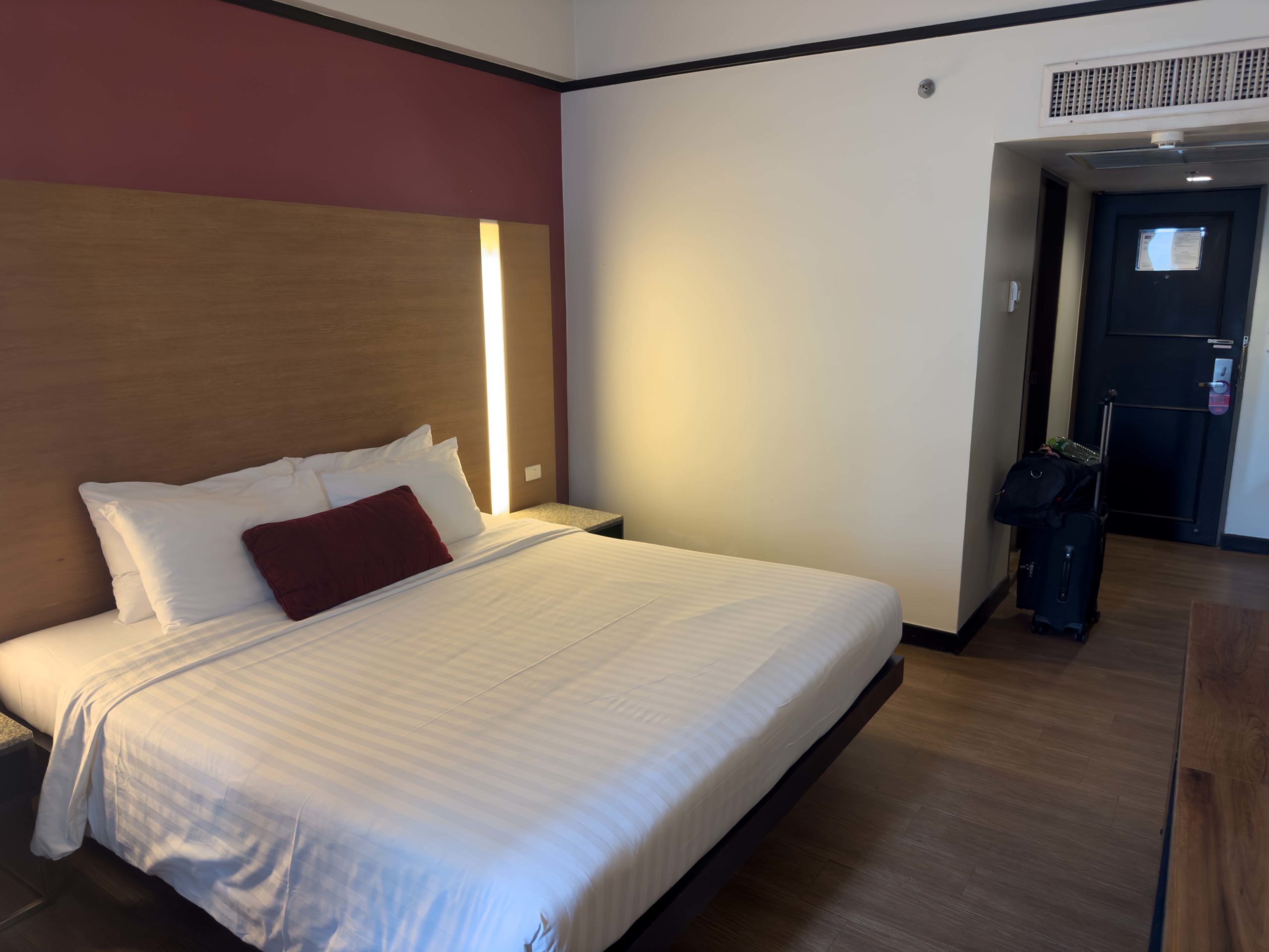 The flight went by quickly and I woke up just in time for landing at Suvarnabhumi International Airport (BKK) in Bangkok, Thailand. Our flight arrived just before midnight, but it hardly felt like late evening with all of the passengers moving about the airport. After getting off the plane, there was about 10 minutes of walking from one of the outer gates to the central part of the terminal. After a few minutes in the immigration lanes, we found ourselves in the baggage claim area. With no checked luggage to collect, we headed straight out of the baggage claim area, through customs, and into the main arrivals hall.