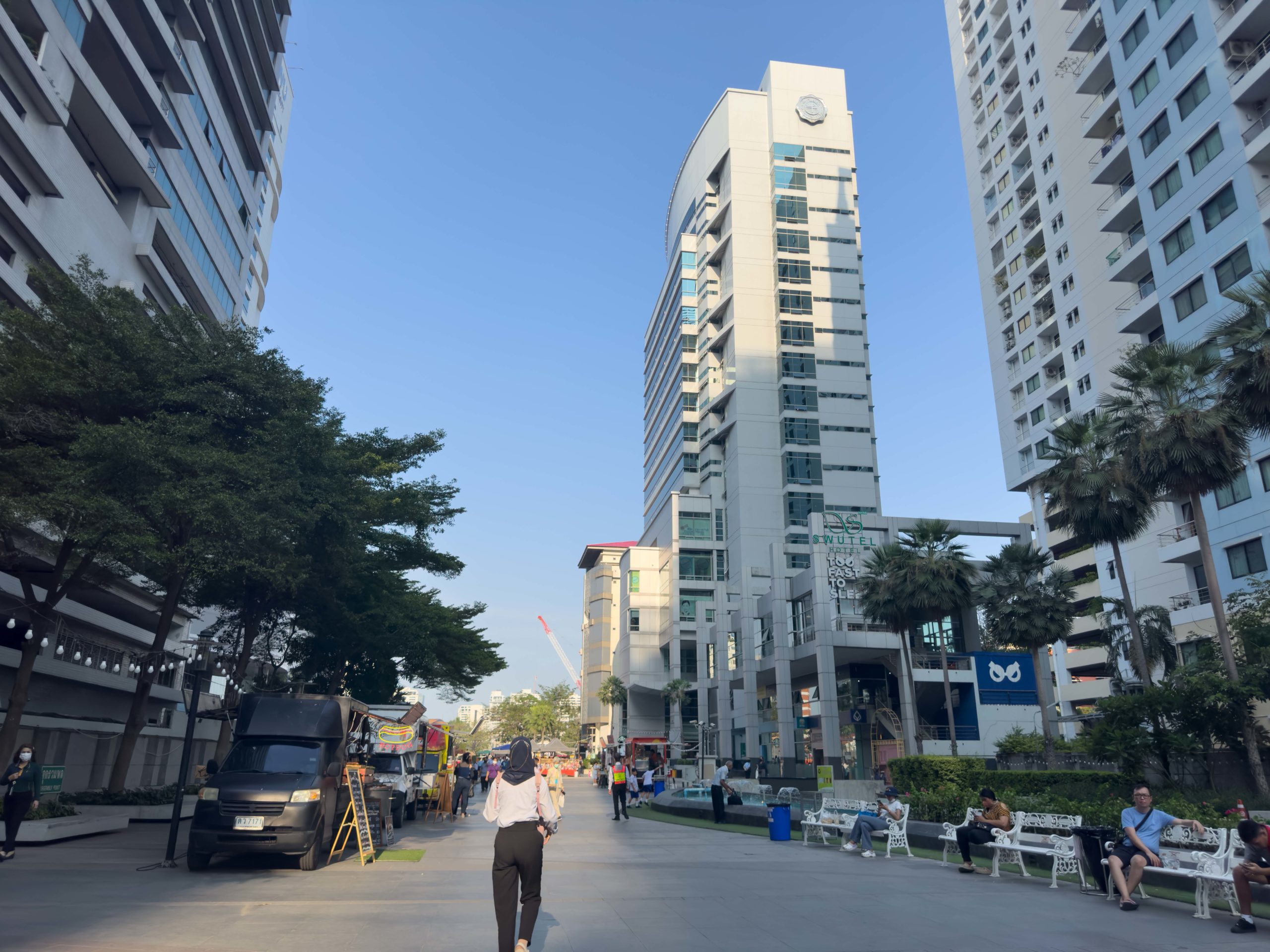 The songthaew is a common form of public transportation in Thailand. It’s just a pick-up truck with benches in the back and a roof over the bed. (~$0.30 USD) per trip. Once on Second Road, we flagged down a songthaew, hopped in the back and enjoyed the cool breeze as we made our way north. The songthaew slowly filled with people with some passengers standing on the rear bumper, holding onto rails as the driver weaved in and out of traffic. The wind blew through our hair, carrying with it the smells of street food and diesel exhaust fumes. As we neared our destination, I reached up to push a signal button which rang a car alarm siren in the truck bed. The driver pulled over immediately, we hopped out, each paid our 10 baht and found ourselves next to Terminal 21 (map).