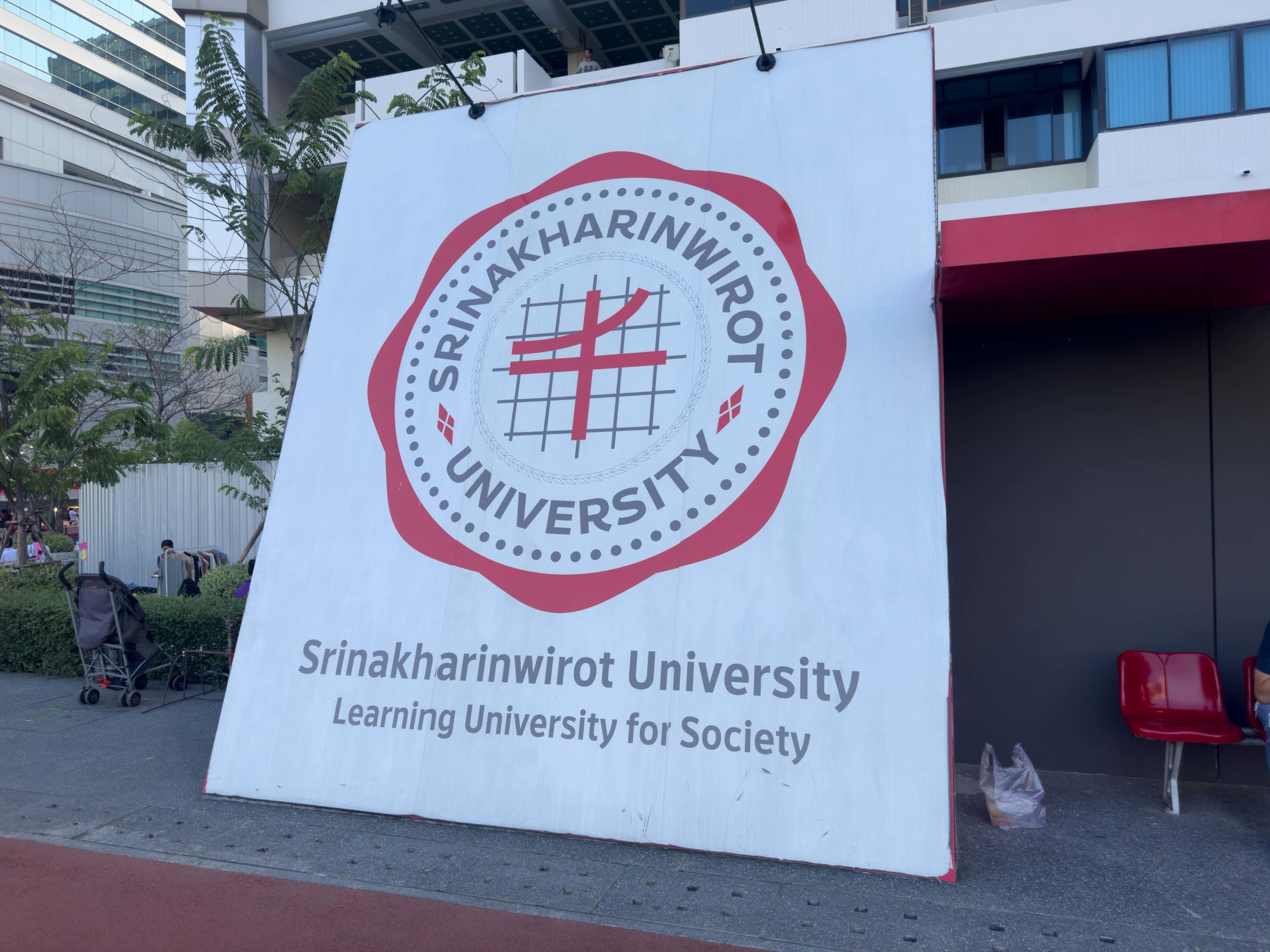 After checking in, we jumped onto the BTS Skytrain and headed to Chit Lom where we could get off just outside of Central World shopping mall. After traversing through one of the larger malls in Bangkok, we ended up at the Pratunam Pier were we were able to jump onto one of Bangkok’s water taxis, a large boat that ferries people up and down the one of the major canals in the city. At just 20 baht or so, the ride was cheap and the lack of traffic got us to our destination quickly. We jumped off the water taxi at Asok Pier and walked over to Srinakharinwirot University where a newly opened, on-campus night market was starting up for the evening.
