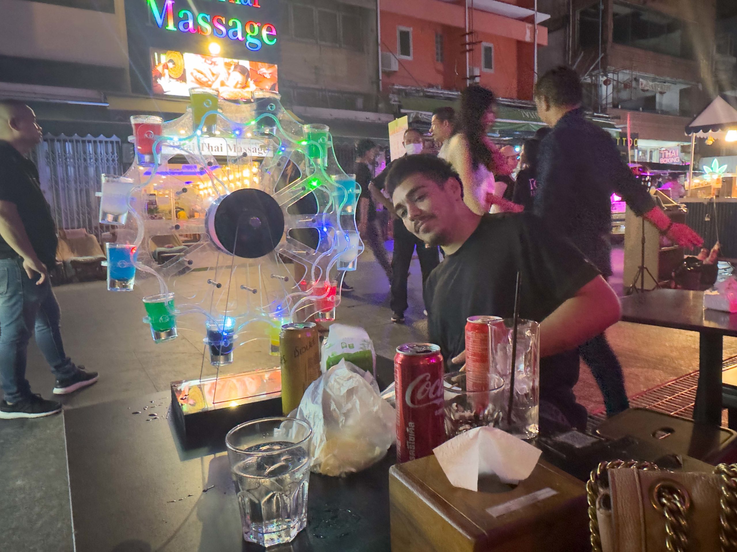 Pattaya’s Walking Street is a renowned and vibrant part of Pattaya City in Thailand, known for its bustling nightlife. This pedestrian-only street comes alive after dark and stretches about one kilometer from the south end of Beach Road to the Bali Hai Pier. The street is a hub of entertainment and is famous for its neon-lit landscape, consisting of nightclubs, bars, restaurants, and go-go bars. It’s a popular destination for tourists seeking nightlife activities, with a wide array of live music venues, street performances, and international cuisine options. Walking Street reflects the lively and often extravagant nightlife scene that Pattaya is famous for. After heading down Walking Street for a look around, we decided it was a long day and headed back to the hotel to get some rest.