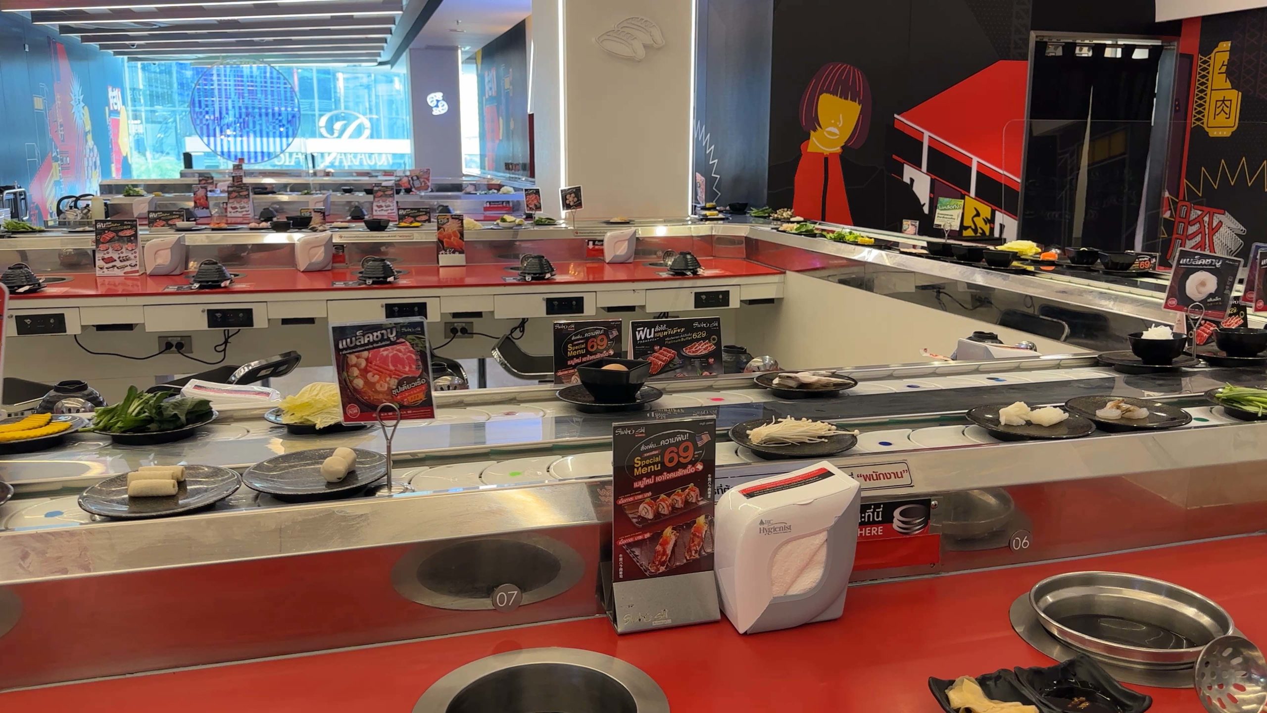 Unlike many of the tourists in Pattaya, shopping wasn’t really our thing, but all-you-can-eat hotpot definitely was. We headed to the top floor of Terminal 21 to one of our favorite restaurants, Shabushi for dinner. Shabushi is a “kaiten” style hot pot restaurant. Kaiten refers to a conveyor belt that winds its way through the restaurant, bringing dishes of raw veggies and meats right to your table. At our seating area, each of us had a hot pot full of boiling soup broth in front of us as well as an assortment of dipping sauces. We pulled the raw items from the conveyor belt and threw them into the broth to be cooked. The buffet also featured, an assortment of sushi, shrimp and vegetable tempura, potstickers, Japanese curry rice, fresh fruits, ice cream, and soft drinks. The following video wasn’t of us, but you’ll get a good idea of what Shabushi has to offer by watching. A great deal at around 400 baht ($12.00 per person).